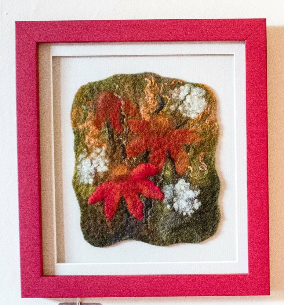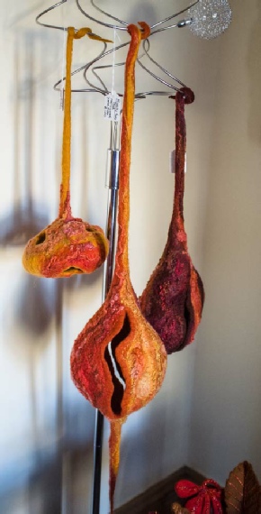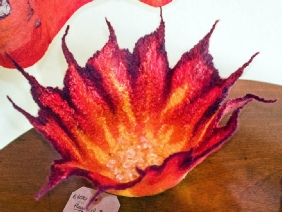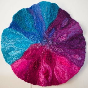 Loosely inspired by a mossy tree stump, this felt pod uses merino, blue faced leicester & Wensleydale wools with silk fibres, and silk, velvet, cotton lace & satin fabrics wet felted in, with dense hand embroidery